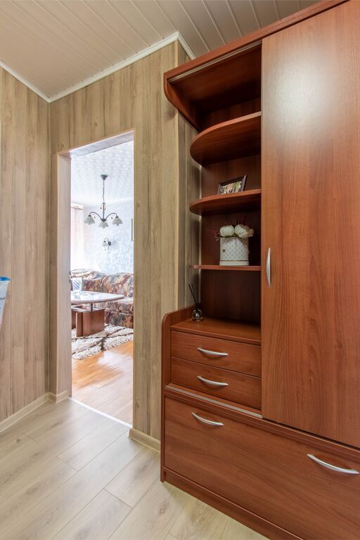 Parduodamas erdvus 4-ių kambarių butas Taikos g. 1B, Rokiškyje. RENOVUOTAS mūrinis namas pastatytas 1971 metais. Renovacija atlikta 2017 metais ir yra pilnai išmokėta. Būstas yra 5 - ame aukšte iš 5 - ių. Bendras buto plotas 75,57 kv. m. Visame bute sumontuoti plastikiniai langai kurie orientuoti į abi namo puses, todėl butas šviesus ir jaukus. Įstiklintas 4 metrų balkonas. Šildymas centrinis-kolektorinis, sumontuoti šilumą reguliuojantys radiatoriai, galima individualiai reguliuoti šilumą. Labai ekonomiškas būsto išlaikymas. Parduodamas su baldais ir buitine technika. Butui priklauso du dideli rūsiai: 7,92 kv. m ir 6,93 kv. m. Tvarkinga namo laiptinė. Šalia namo yra automobilių stovėjimo aikštelė. Gera namo lokacija, netoli prekybos centrai, ugdymo įstaigos. Puikus variantas šeimai su vaikais.