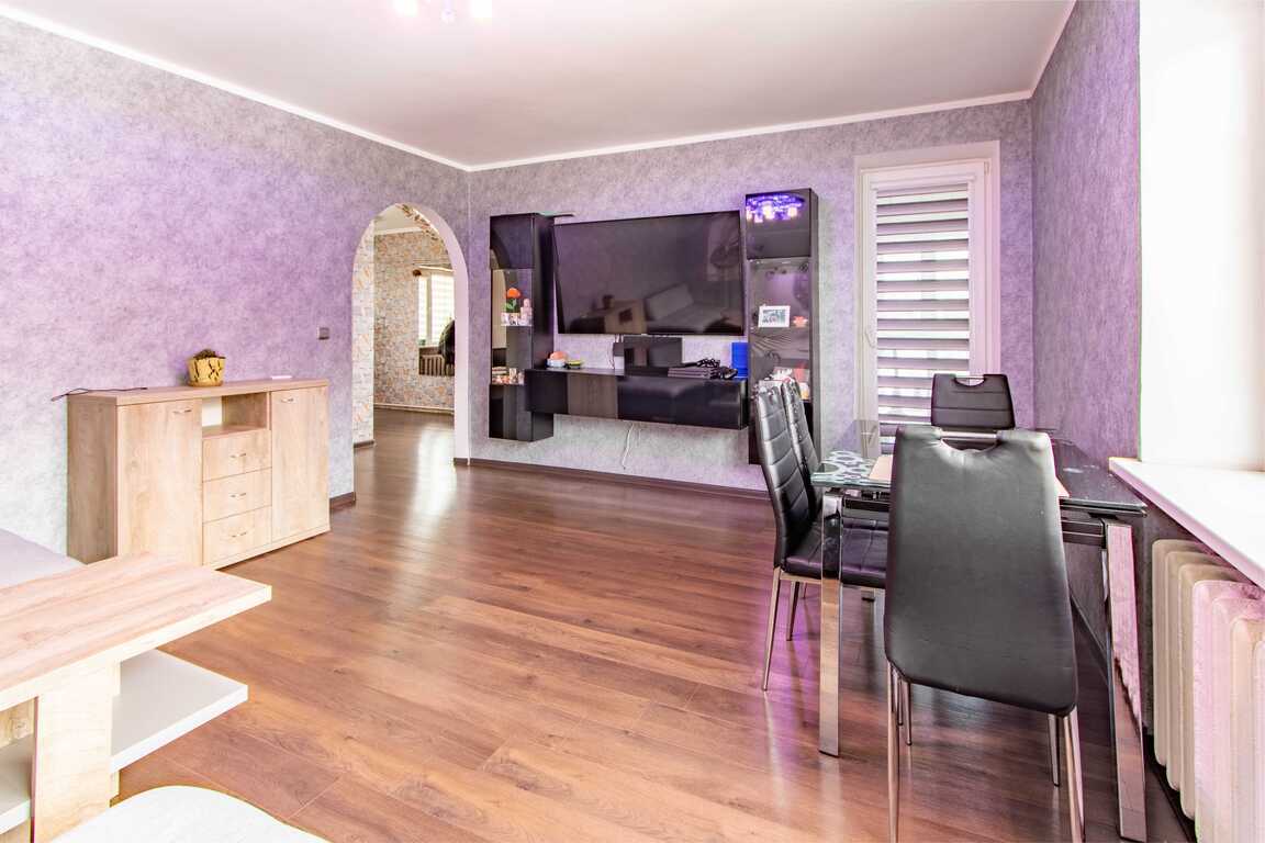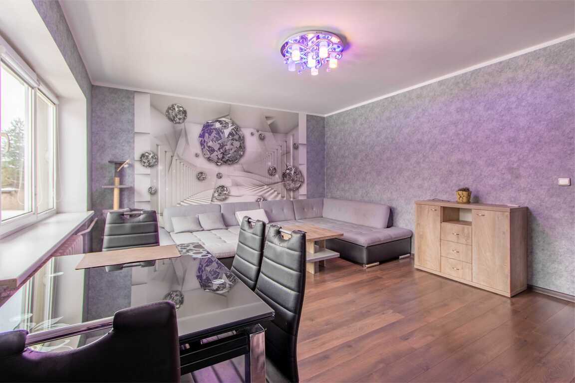 Parduodama erdvi 3-jų kambarių namo dalis su terasa ir garažu Velžio kel.90, Panevėžio mieste! Gyvenamasis šios namo dalies plotas – 84,18 kv. m, po namu rūsys. Yra 17,15 kv. m. garažas su duobe. Namo daliai priklauso 5,72 aro žemės sklypas, kuriame stovi malkinė ir šiltnamis. Teritorijos dalis apjuosta tvora, pasodintos tujos. Namo dalyje yra trys kambariai 2 aukšte, atskiras vonios ir wc kambarys. Funkcionaliai suplanuota virtuvė su išėjimu į terasą, jauki svetainė su įstiklintu balkonu. 2018 metais pakeistas stogas. Šildymui naudojamas kietas kuras (naujas katilas), yra trifazė elektra, miesto vandentiekis ir nuotekos. Šalia namo eina dujų trasa. Sklypas sutvarkytas, geras privažiavimas, patikima kaimynystė.